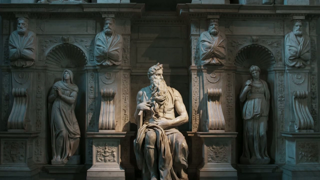 Investigation of the forty years it took the artist to complete the mausoleum of Pope Julius II against a complex background of Vatican intrigue and political tumult.